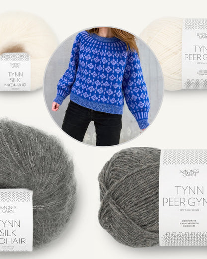 Majsan Sweater | Blütenmuster aus Tynn Peer Gynt und Tynn Silk Mohair von Sandnes Garn